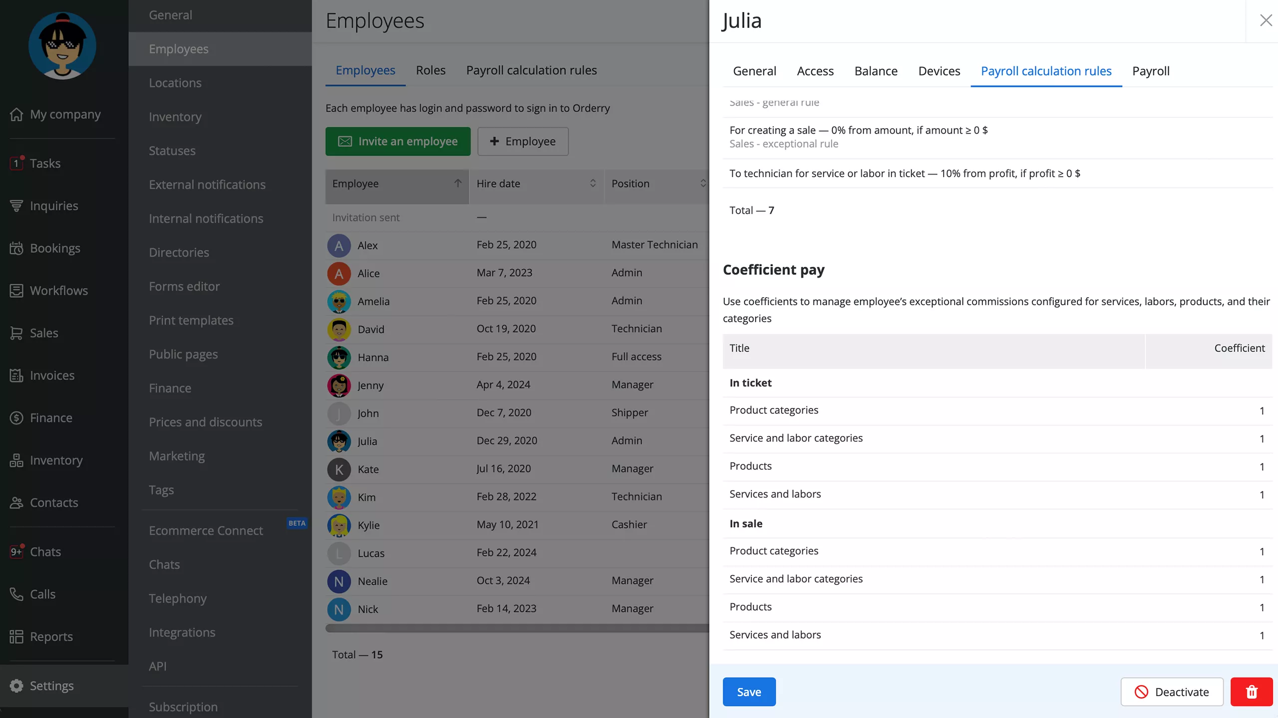 Acknowledge your techs for good work with an “employee of the month” program, gift certificates, additional vacation days, new cool tools, etc. Develop a wage-growing system based on the level of seniority and experience so your mechanics feel they are paid fairly. For example, you can set up a coefficient in RO App payroll settings for each employee, and the program will multiply the standard reward value by the specified number.