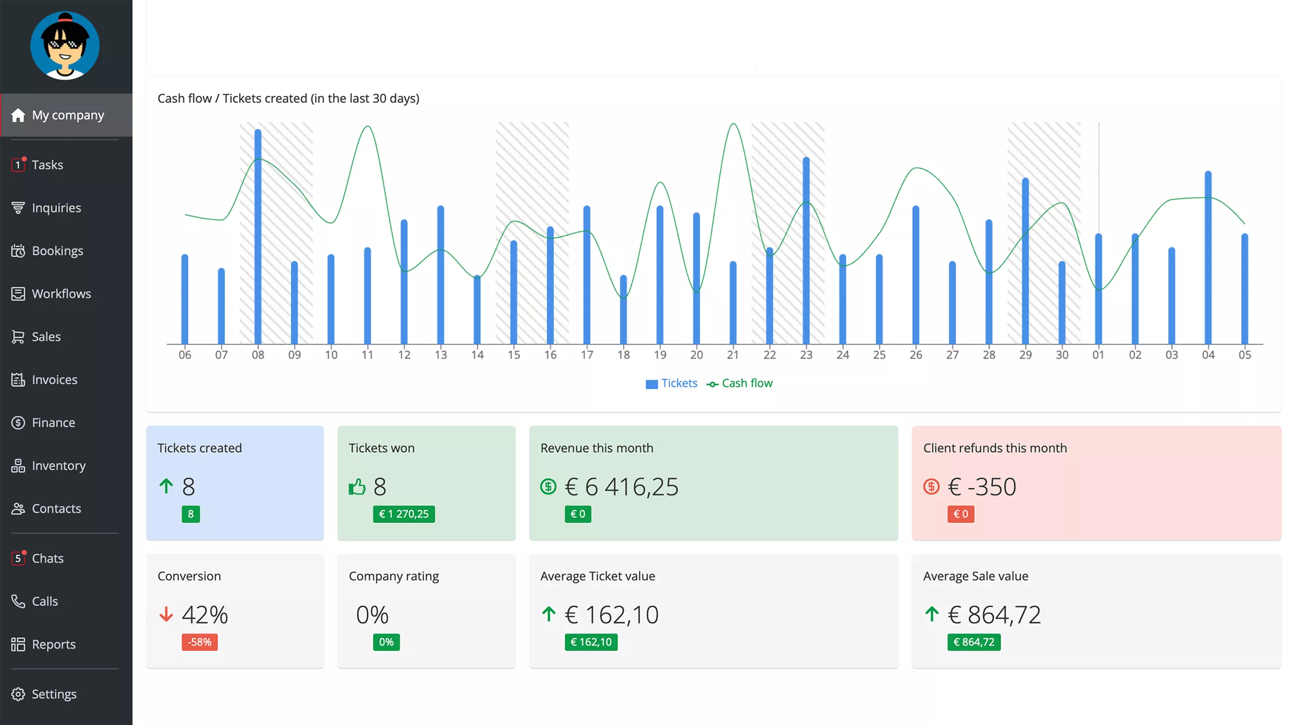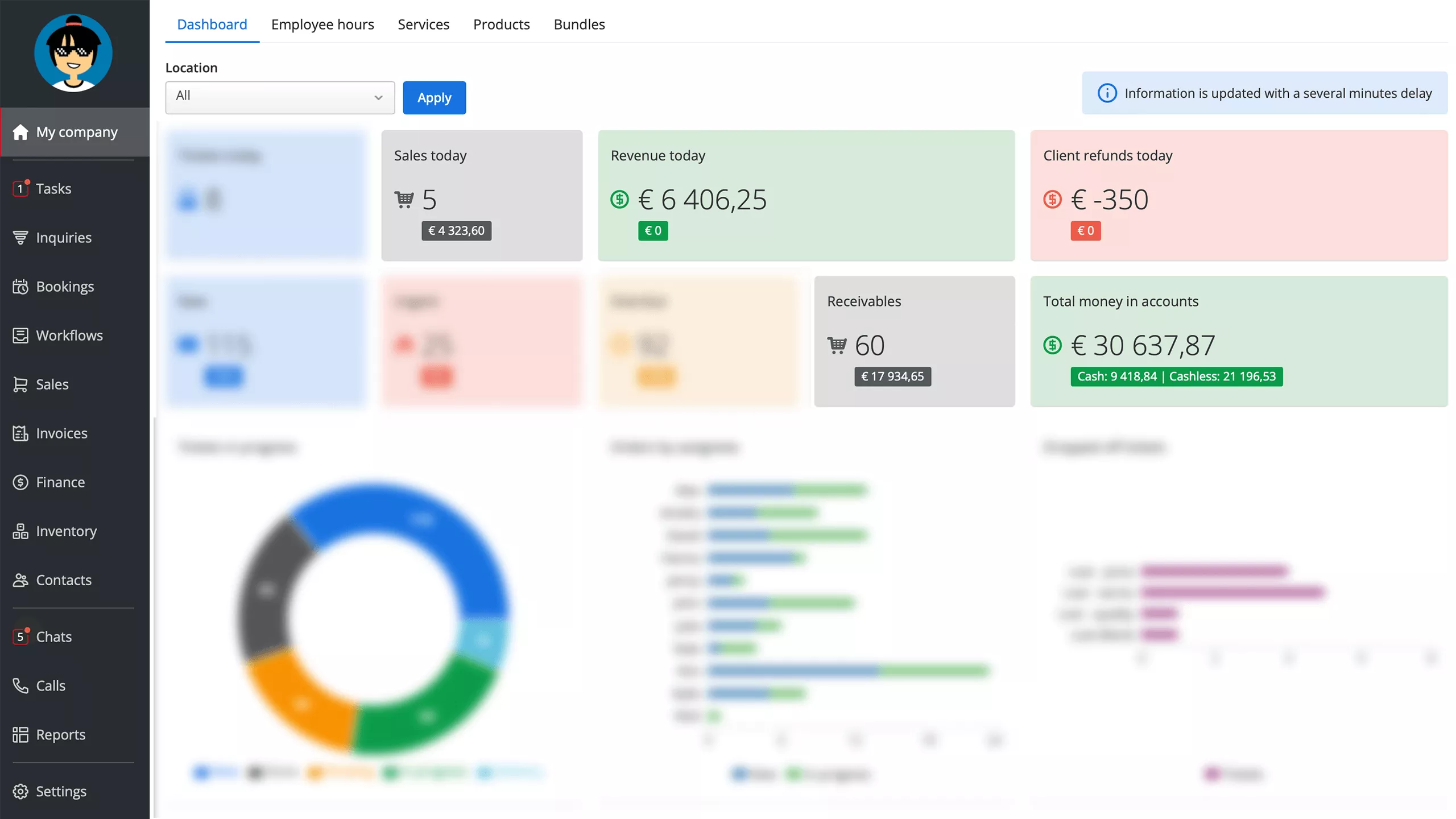 Tendrás todos los números que necesitas en gráficos muy intuitivos. El Panel de Control te ayuda a conocer el rendimiento actual del negocio y localizar las oportunidades de mejora del mismo.