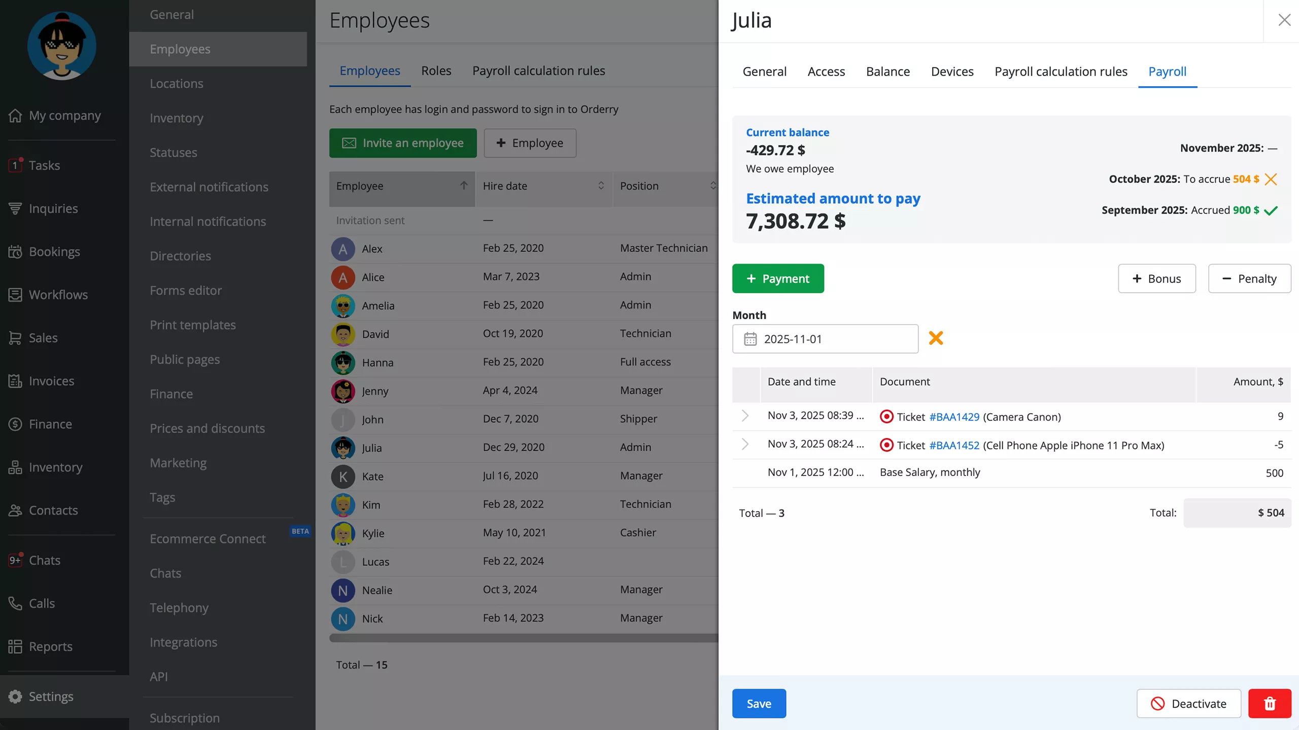Nuestro programa de servicios funerarios también gestiona su proceso de nómina para que pueda reducir el impacto del error humano en su trabajo administrativo. Configure la tarifa, el porcentaje de trabajo realizado y las bonificaciones para cada empleado individualmente, y RO App mostrará automáticamente la cantidad final a pagar.