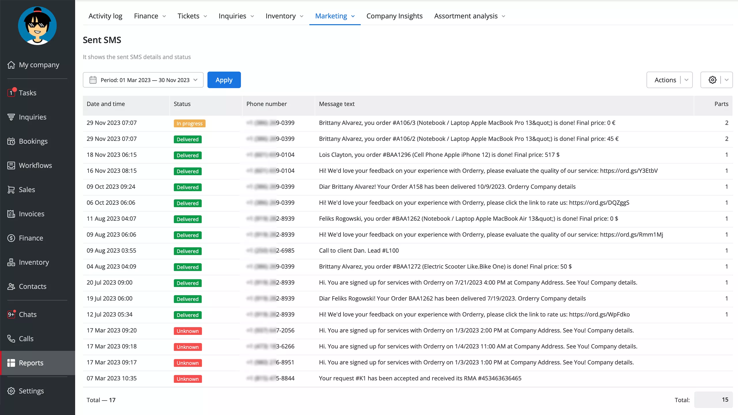 Configura alertas automáticas por SMS para que clientes y empleados estén actualizados acerca del estado de la orden o cualquier cambio en ella. De esta manera, te asegurarás de que todos sepan lo que está pasando y sigan el flujo de trabajo.