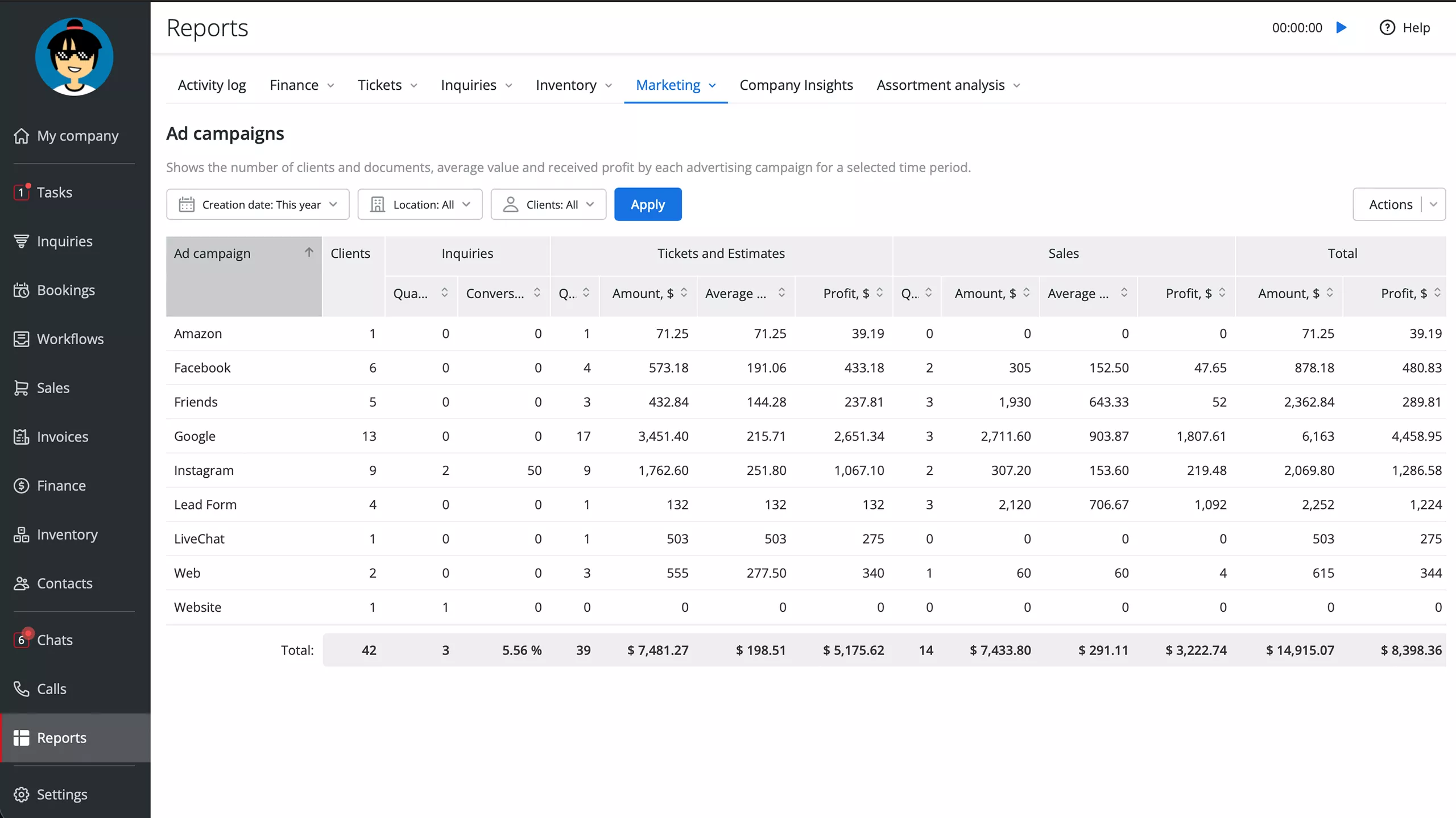 Relatórios abrangentes permitem que você assuma o controle do seu esforço de marketing para criar campanhas de anúncios duradouras que realmente gerarão dinheiro. Personalize e monitore diferentes canais de publicidade, detecte coisas redundantes e gargalos e tenha espaço para melhorias. Priorize as fontes de clientes potenciais com melhor desempenho e nunca desperdice o orçamento com estratégias que não sejam tão boas.