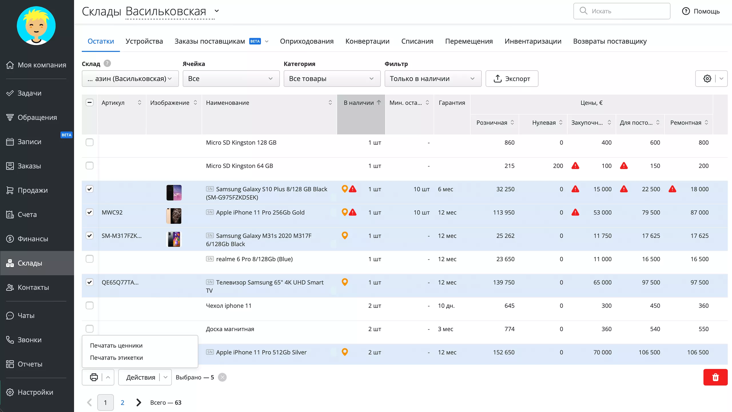 Создавайте ценники для товаров, стоящих на складском учете. Перед тем, как сделать ценники, установите скидки, редактируйте цены и выбирайте подходящий тип цены. Так вы сможете быстро сделать ценник онлайн и распечатать его с актуальной информацией.