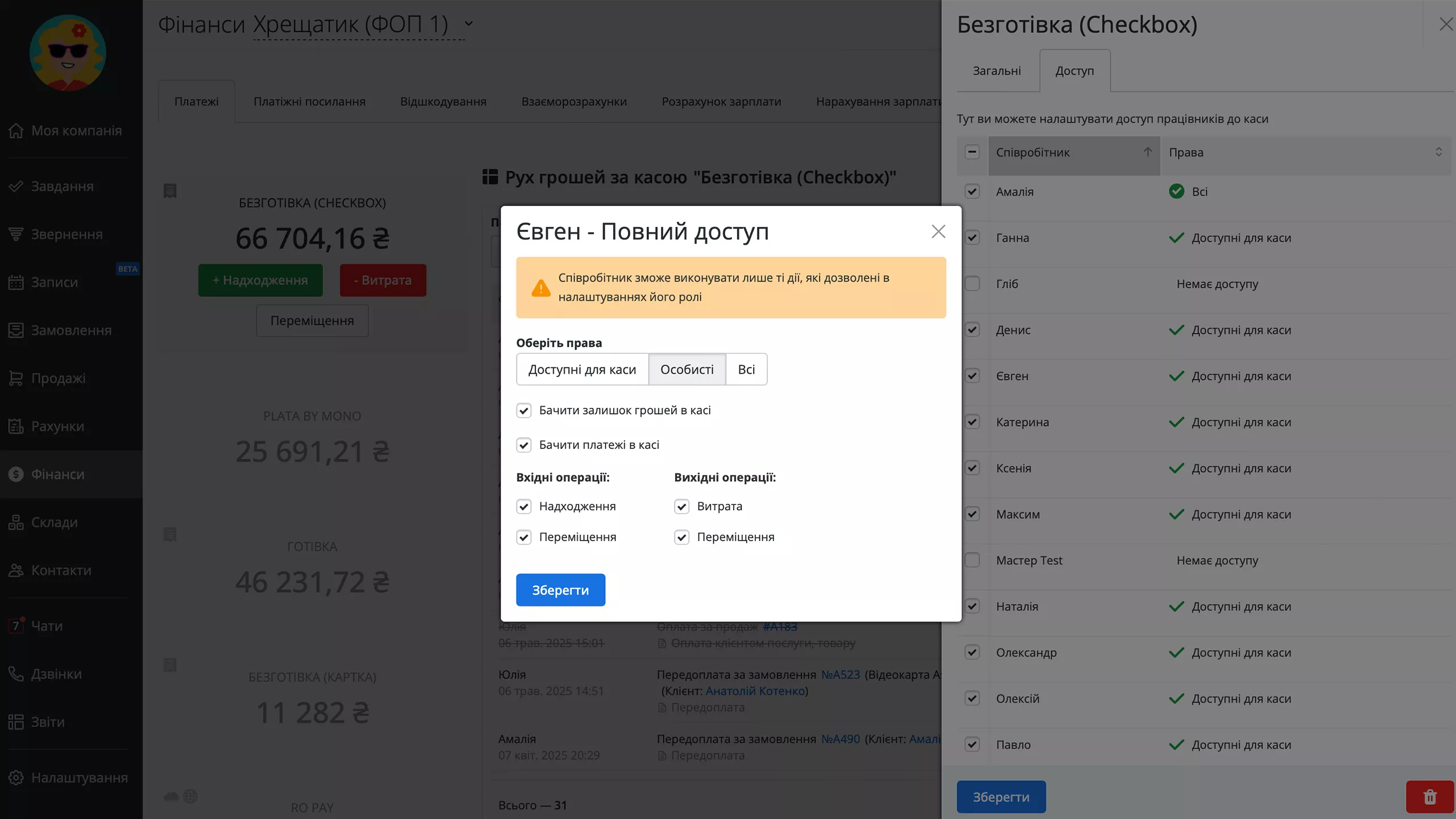 Ведіть облік коштів, реєструючи фінансові операції в касі. Вказуйте статті ДДС, розподіляйте доходи і витрати підприємства за різними напрямками.