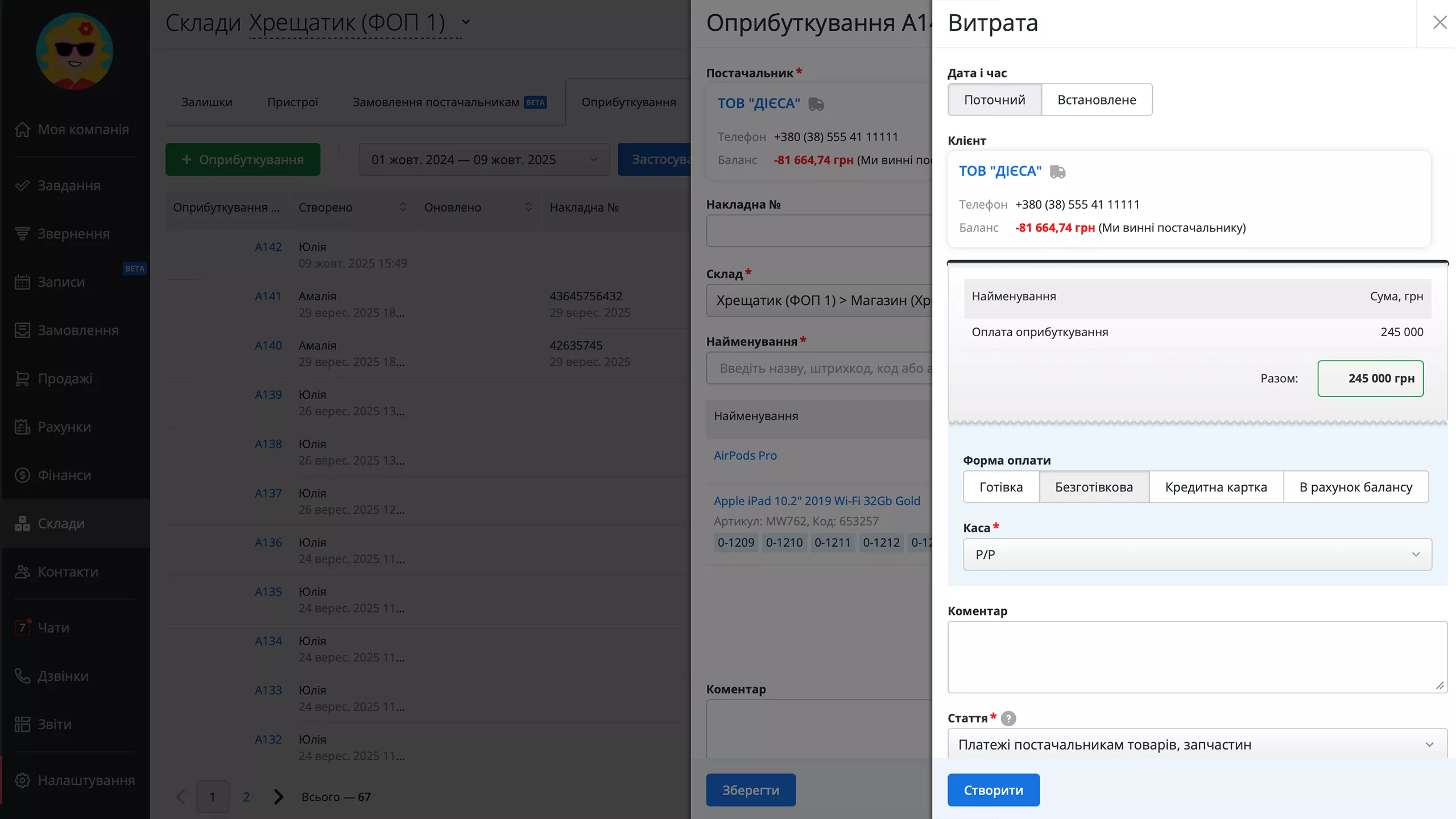 • Отримуйте лише правильні дані на підставі замовлень, продажів, оприбуткувань та інших операцій, щоб облік фінансів був прозорим і точним.