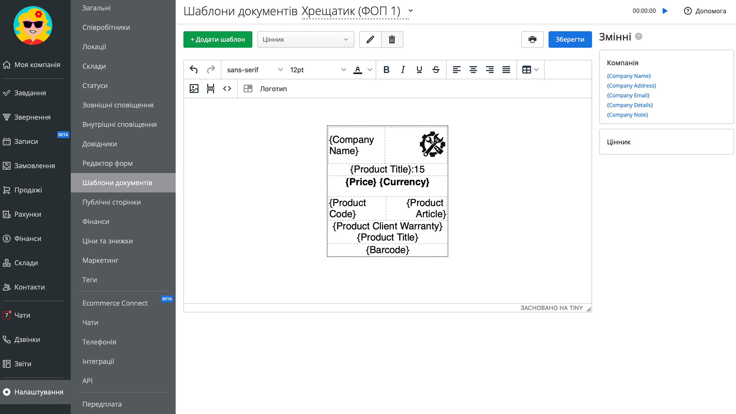 Комбінуйте змінні, що відповідають за експорт інформації про компанію, товар, і створюйте власні шаблони. Друкуйте за допомогою змінних назви, адреси, електронні скриньки та реквізити, а також найменування, описи і артикули товарів. Налаштуйте вигляд і друк етикеток у редакторі, обмежуйте довжину назви товару та обирайте оптимальний масштаб.
