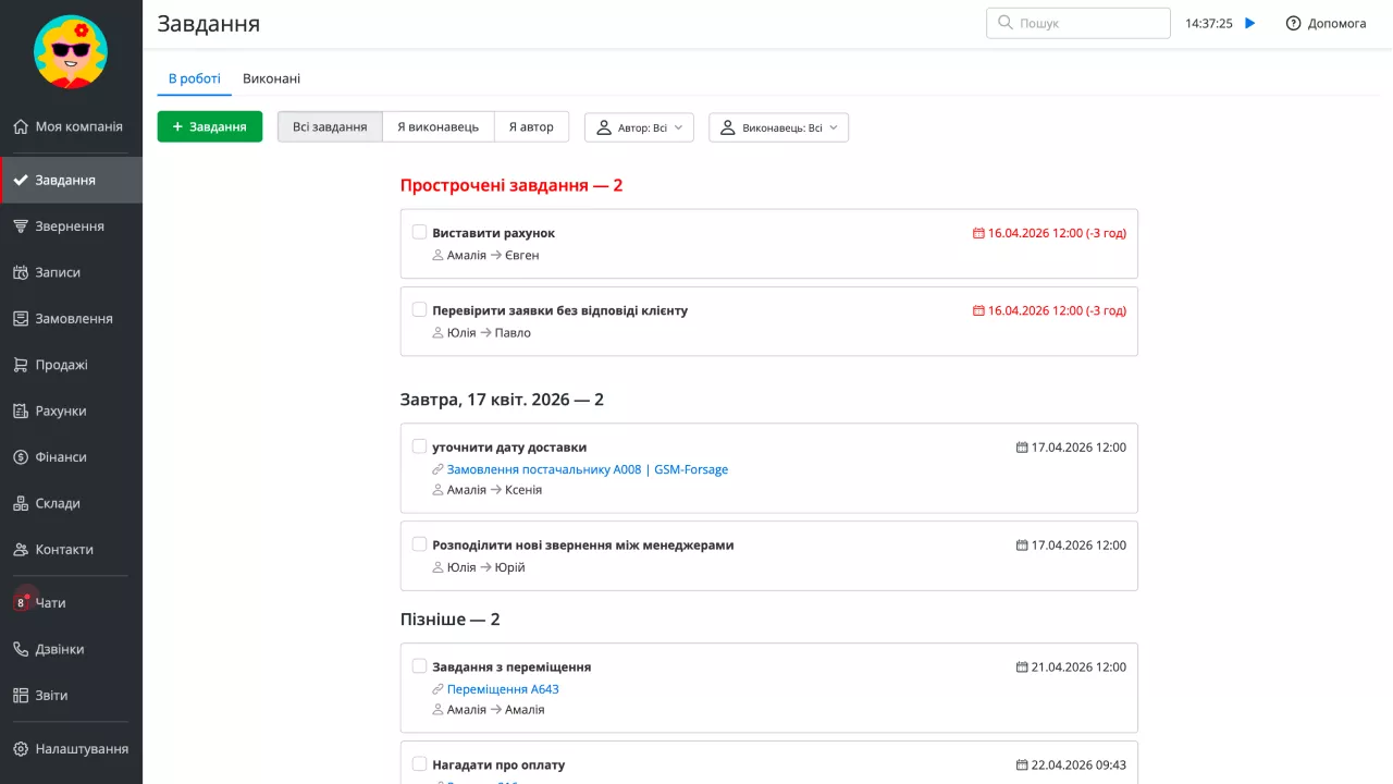 Впорядковуйте завдання та замовлення, відстежуйте їх виконання
