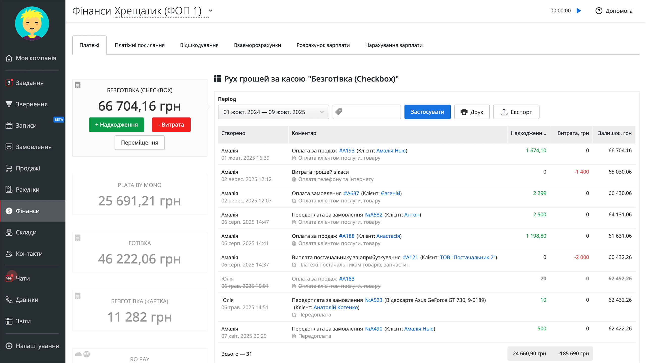 Управлінський і фінансовий облік у друкарні значно спрощуються завдяки легкій фіксації продажів послуг, касових операцій, оприбуткувань і управління запасами. Супутня звітність формується автоматично в кілька кліків.