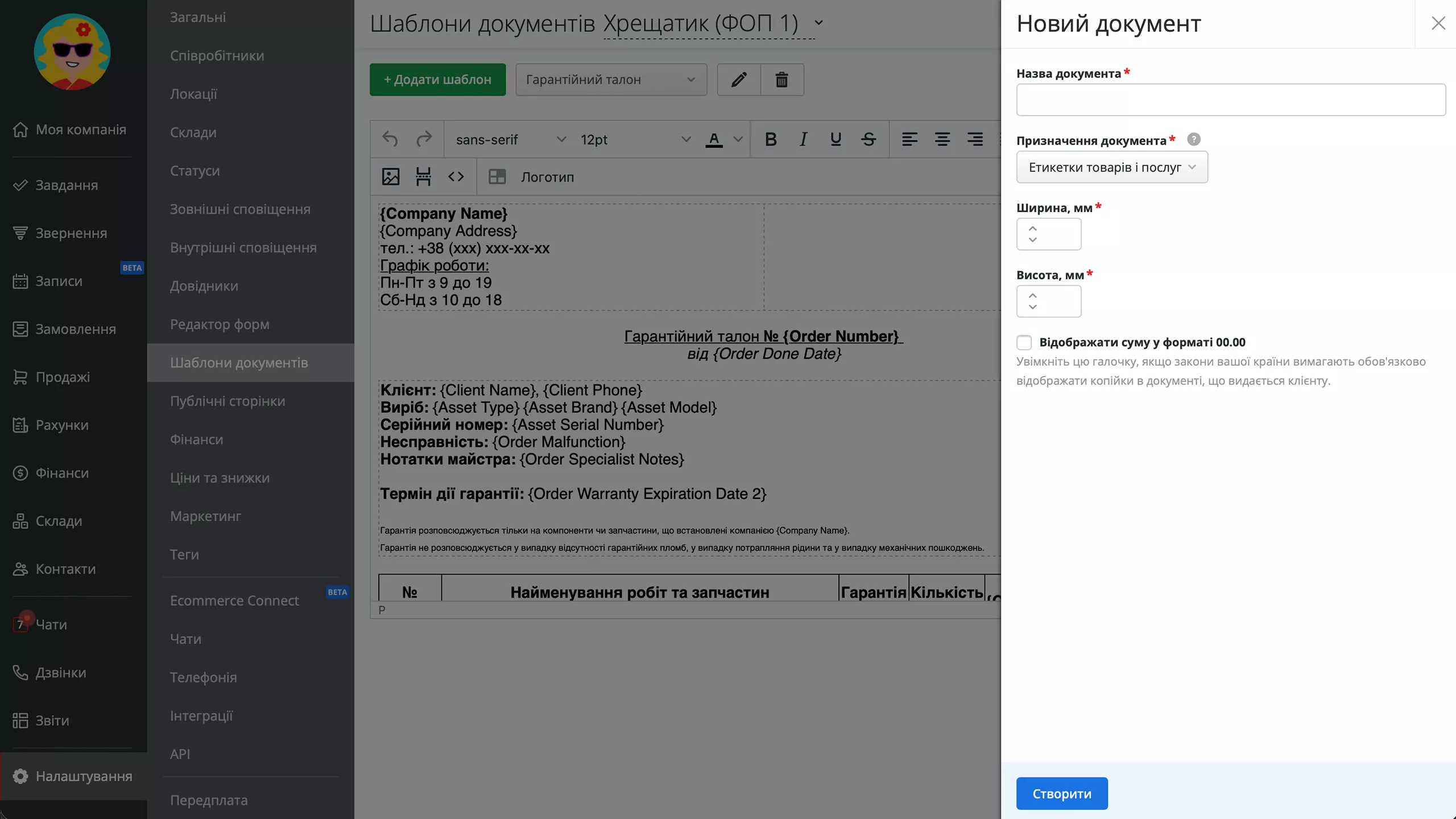 Скоротіть час, який ви витрачаєте на формування документів. Використовуйте готові шаблони для автоматичного створення договорів, комерційних пропозицій та інших ділових паперів. Додайте їх у замовлення для повноти звітності, друкуйте або надсилайте клієнтам електронною поштою.